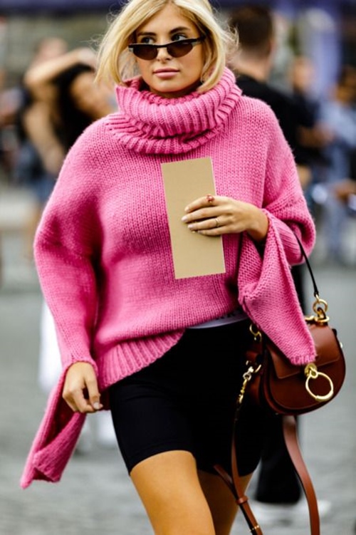 Áo cổ lọ tuy đẹp và giúp tôn lên phần cổ xinh xắn của người mặc nhưng cũng là nguyên nhân khiến bạn gái trông “đồ sộ” hơn đôi phần. Để hạn chế tình trạng này, bạn có thể chọn kiểu áo len cổ V hoặc cổ trụ, đồng thời hạn chế cả các thiết kế ôm sát bởi chúng rất dễ “tố cáo” vòng 2 không được thon gọn lắm của bạn. Những chiếc áo phom oversized, vừa vặn ở cổ và vai nhưng hơi rộng ở phần dưới sẽ giúp bạn tự tin hơn trong khoản che khuyết điểm và mix đồ.