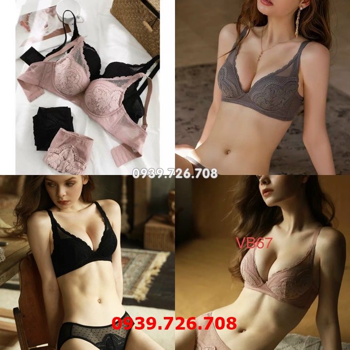 Bộ đồ lót ren cúp tam giác ko gọng mút dày nâng ngực