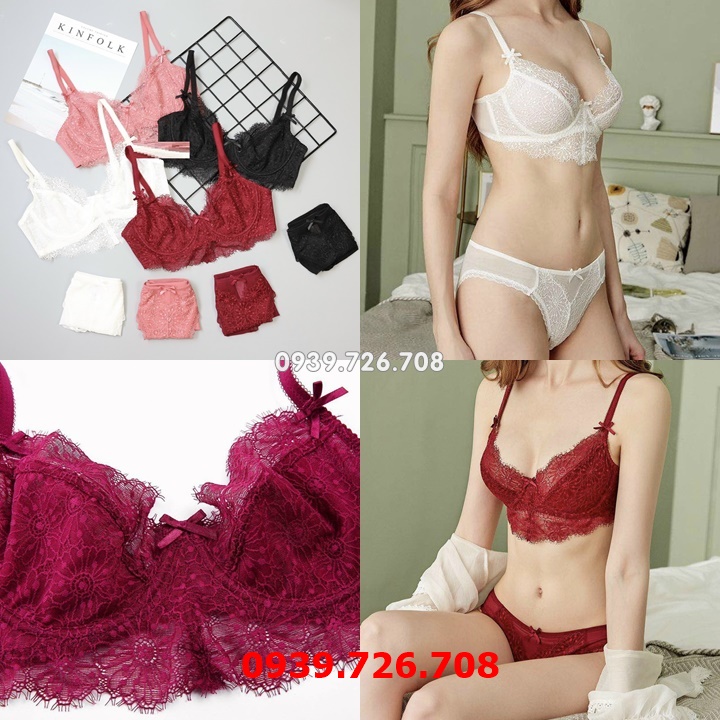 Bộ đồ lót ren hoa cúc có gọng ko mút có khe nhét mút viền ren đính nơ