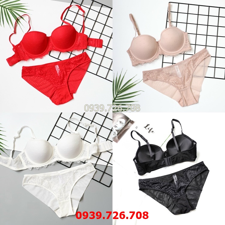 Bộ đồ lót ren lưới chấm bi mút dày nâng ngực đẹp