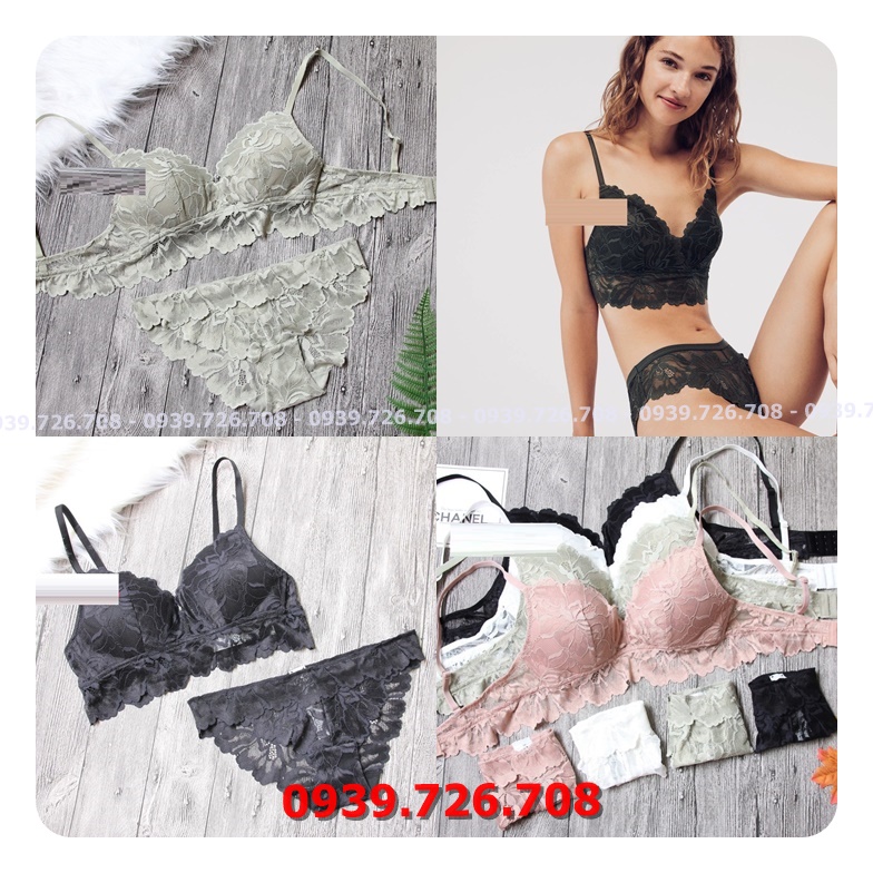 Bộ đồ lót ren nỗi ko gọng không mút bảng rộng 3 móc