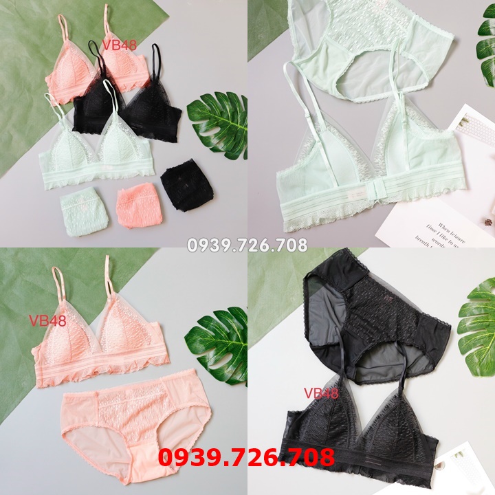 Bộ đồ lót ren tam giác ko gọng mút nhẹ bảng hông lớn che khuyết điểm * Size: 34B, 36B * Màu: như hình* BONITO Moda tự hào là nơi cung cấp Bộ đồ lót ren tam giác ko gọng mút nhẹ bảng hông lớn che khuyết điểm và thời trang đồ ngủ nội y cao cấp...