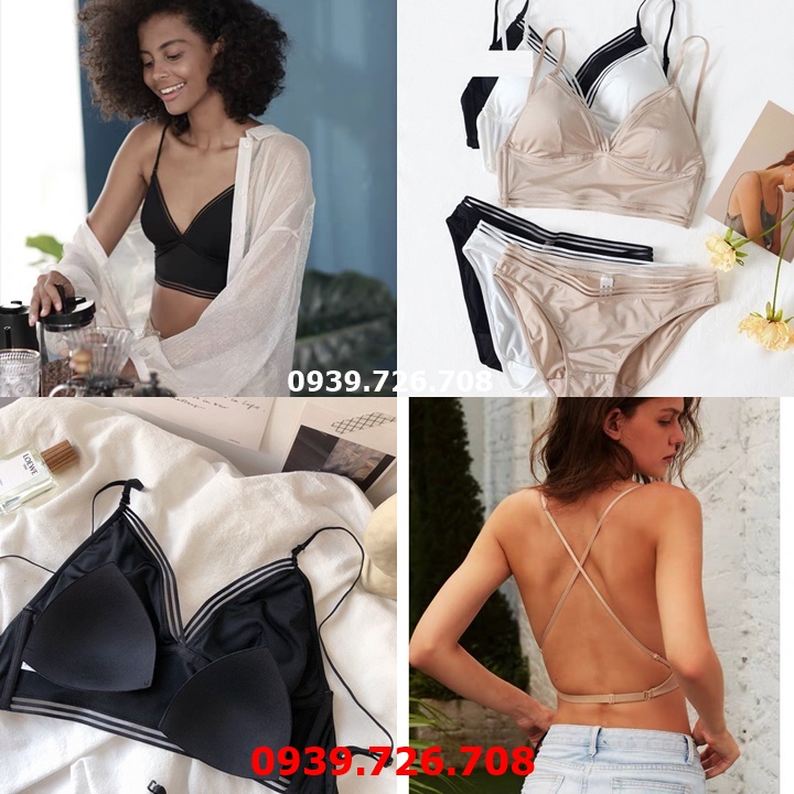 Bộ đồ lót thun lạnh viền ren sọc ko gọng ko mút lưng U