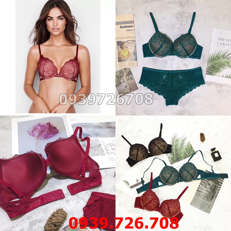 Bộ đồ lót VF ren cúp tròn mút vừa