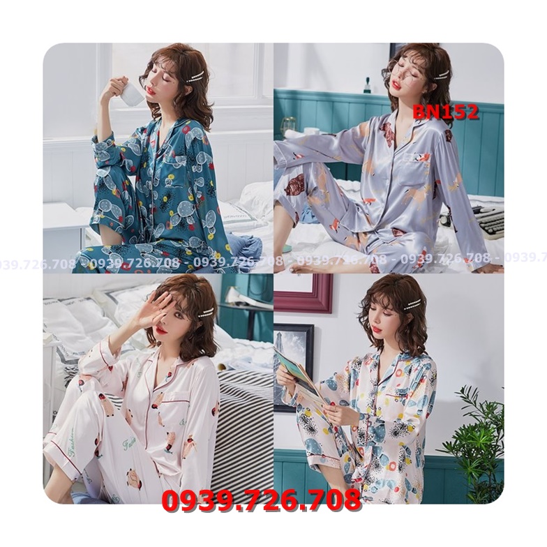 Bộ ngủ nữ Pijama quần dài tay dài chất lụa đẹp mịn mát hàng cao cấp