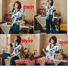 Bộ ngủ Pijama lụa quần dài vải trơn áo họa tiết