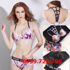 Mua hàngBộ đồ lót cao cấp Pink hoa chéo lưng mút vừa