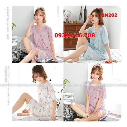 Mua hàngĐầm ngủ pijama kiểu dáng sơ mi hàng thiết kế ch...