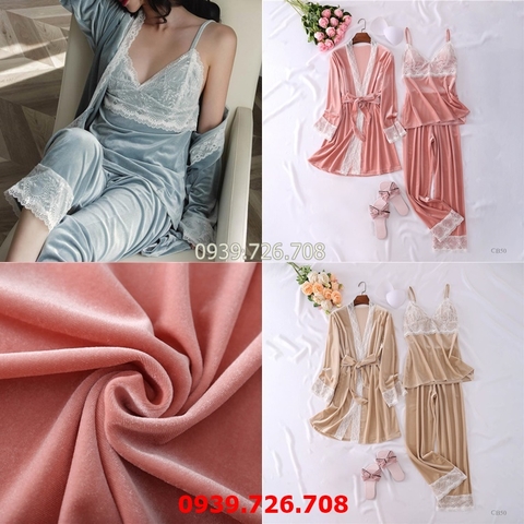 Áo choàng ngủ kết hợp bộ ngủ - Bộ đồ ngủ 2 dây đẹp chất nhung cao cấp phối ren mềm mịn quyến rũ - Làm thế nào để trông đẹp...