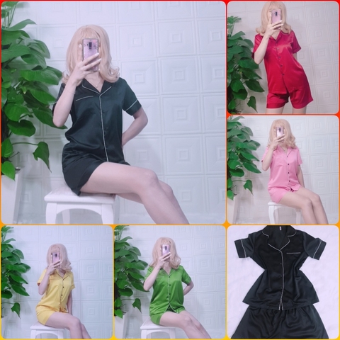 Bộ đồ ngủ pijama lụa cộc tay mặc nhà ❤️ bộ đồ ngủ pijama nữ quần ngắn chất lụa trơn thoáng mát nhiều màu. - Bộ đồ ngủ pijama lụa cộc...