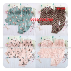 Mua hàngBộ ngủ pijama satin lụa quần dài tay dài họa ti...