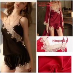Bộ ngủ lụa 2 dây viền ren đính đá hàng đẹp chuẩ...