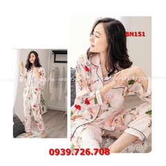 Bộ ngủ pijama lụa quần dài tay dài hàng đẹp