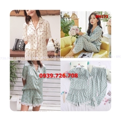 Mua hàngBộ ngủ lụa pijama combo 3 món quần đùi quần dài...