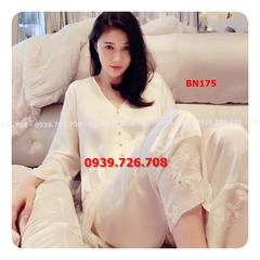 Mua hàngBộ ngủ lụa satin pijama ngọc trai quần dài phối...