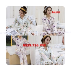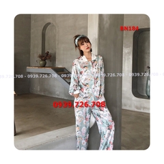 Mua hàngBộ ngủ pijama lụa satin hoa quần dài tay dài hà...