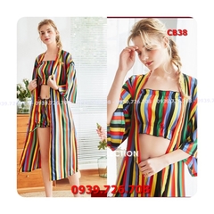 Áo choàng kết hợp bộ ngủ croptop đi biển chất lụa kẻ sọc hàng siêu cao cấp siêu đẹp XUA TAN CÁI NÓNG 40°C 🔥 💦 MANG ĐẾN SỰ ĐÊ MÊ 💦 Áo...