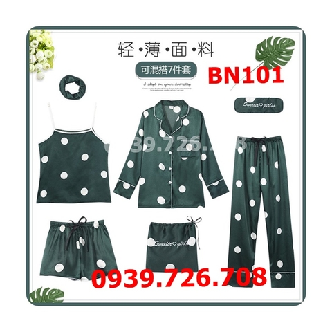 Bộ ngủ pijama lụa 7 món chấm bi lớn 1 set bộ ngủ lụa gồm có 7 món rất tiện lợi đi du lịch. ✔️Bộ áo dây, quần ngắn ✔️Bộ áo dài, quần dài ✔️Băng đô,cột...