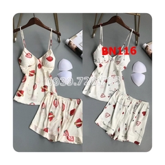 Mua hàngBộ ngủ lụa quần đùi 2 dây mịn mát
