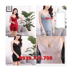 Mua hàngBộ ngủ pijama lụa 2 dây quần đùi ren đắp chéo