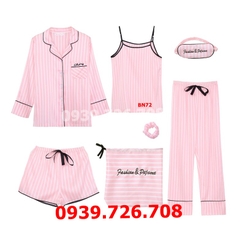 Mua hàngBộ ngủ nữ chất liệu lụa kẻ sọc 7 món hàng cao cấp