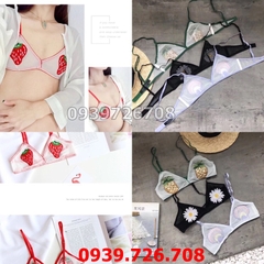 Bộ đồ lót bralette thảo mộc ko gọng ko mút Thiết kế vải lưới mịn mặc bao êm,thấm hút mồ hôi khi vận động vào họa tiết thêu hoa,trái thơm,sò ,trái dâu Ko gọng...