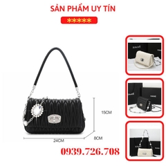 Túi xách nữ da thật hàng hiệu cao cấp Túi đeo chéo mềm đẹp thời trang dự tiệc sang chảnh MÀU trắng kem đen * Dây đeo vai phối đá quý...
