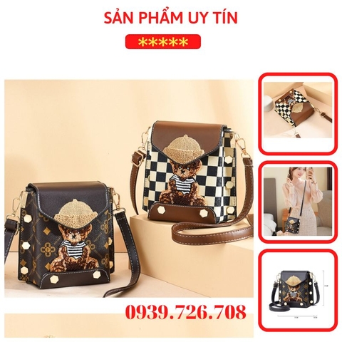 Túi đeo chéo nữ nhỏ gọn đựng điện thoại kiểu Hàn Quốc thêu gấu dễ thương cute thời trang Chốt khóa sử dụng thép không gỉ cùng với lớp mạ ion...