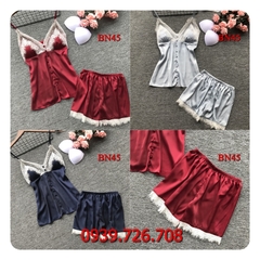Mua hàngBộ đồ ngủ nữ quần đùi áo 2 dây chất phi lụa viề...